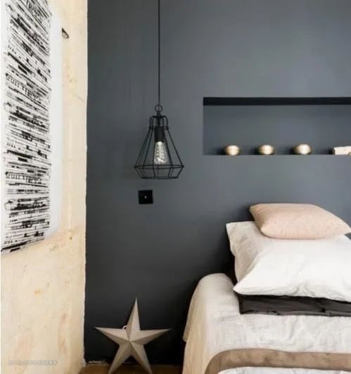 抛开那些固有的观念,开放思维,先想想在床头你需要放些什么,抛弃笨重的传统床头柜,换个细胳膊细腿的风格,会让你觉得整个房间都松快了许多。