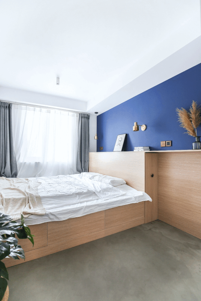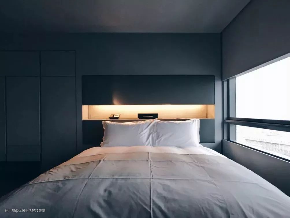 没有地方放床头柜,咱们可以利用墙面空间挖出一个置物空间。