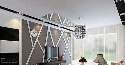 在电视机背景墙设计中加入几何图案和科学的线条分割