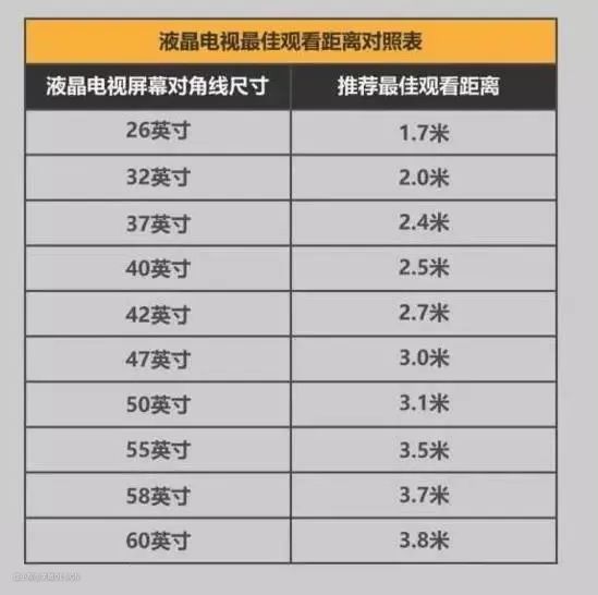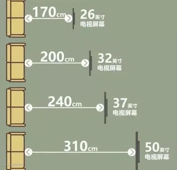 电视尺寸不是越大越好看,越大越气派,最合适你家的尺寸,才是最好的。而且,选择电视机时还要考虑你家沙发与电视墙的距离,太近伤眼、太远影响观影体验,不同尺寸的电视机对应不同的观赏距离。具体参考如下: