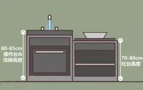 厨房装修中,最重要的尺寸是操作台的。小鹿经常听主妇们抱怨,每次洗碗都洗得腰酸背痛的,这都是因为高度设置不合理。