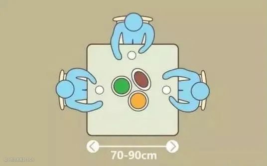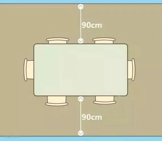 餐桌周围的空间不能太拥挤,不然落座、起身都会受影响。一般建议留出90cm的距离。