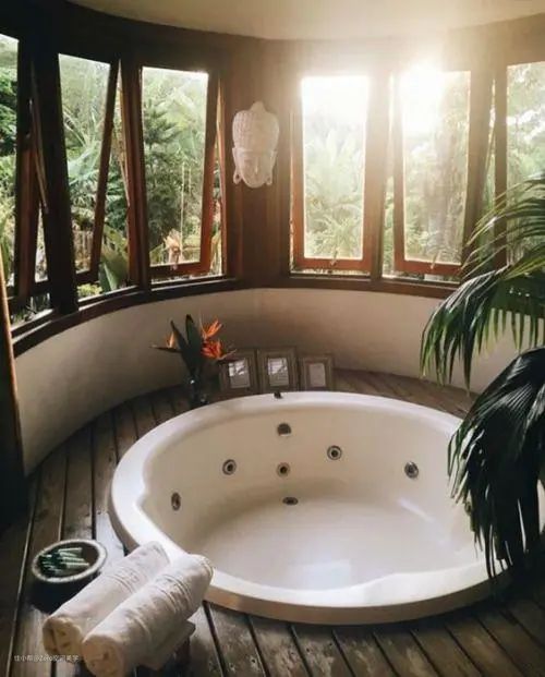 设计内嵌下沉圆形浴缸,打造超大浴室。在这里泡个澡,放松工作了一天的自己。
