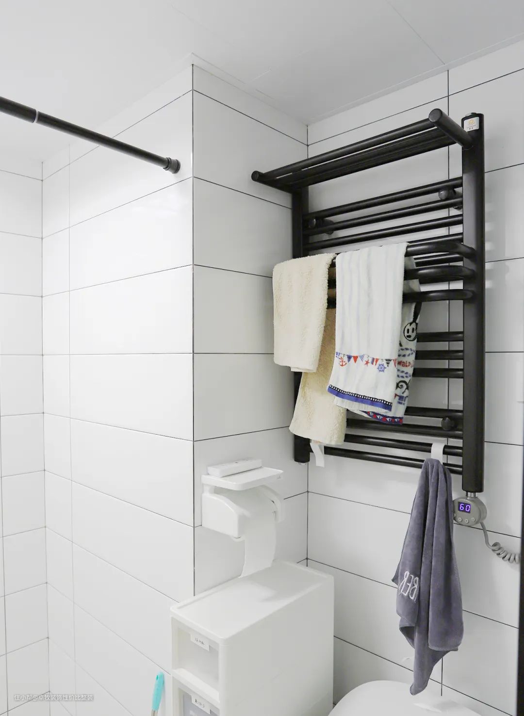 除了晾干换洗的内衣袜子,电热毛巾架也常常是存放浴巾和毛巾这些物品的地方。