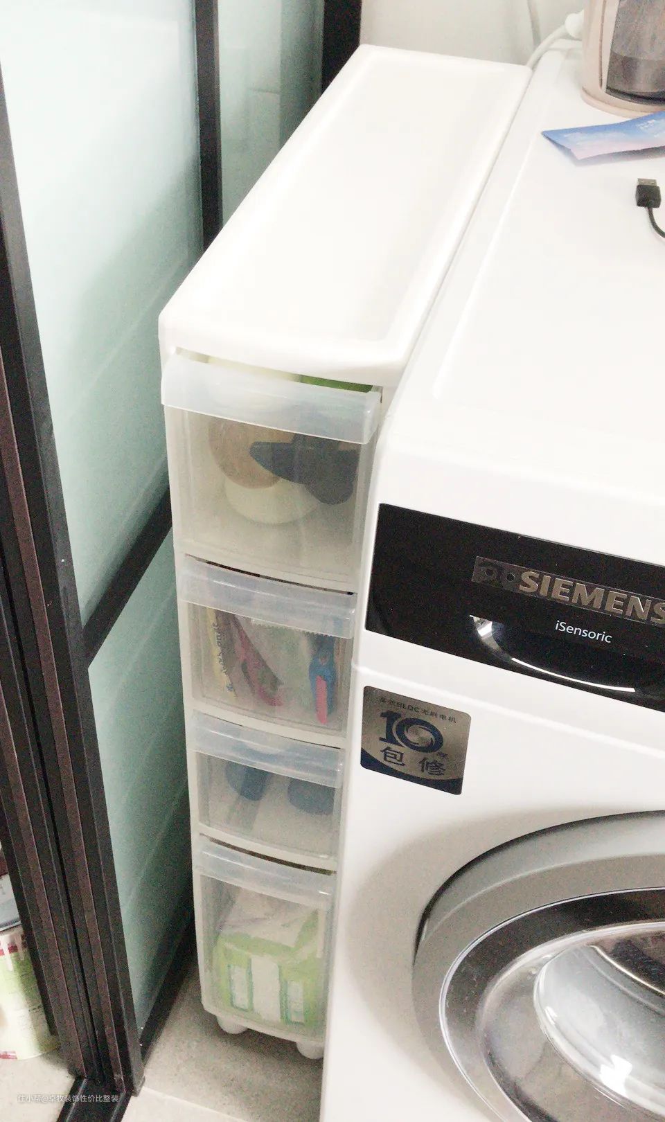 但是这种收纳架更适合侧开门的滚筒洗衣机。