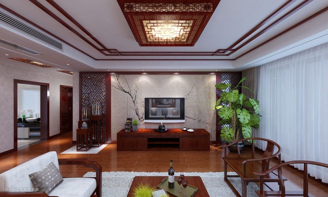 ▲ 中式风格的电视背景墙尤其喜欢用到传统的花格装饰,似乎这就是最具代表性的中式古典元素,不过搭配古文字风格的墙纸确实很好看。