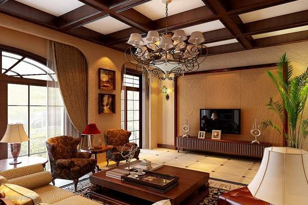 ▲ 纯实木风格的客厅家装越来越成为大众宠儿,在这款设计中,设计师将吊顶的原木板和电视墙的装饰完美的联合到了一起,不需要其它装饰便已经足够养眼。