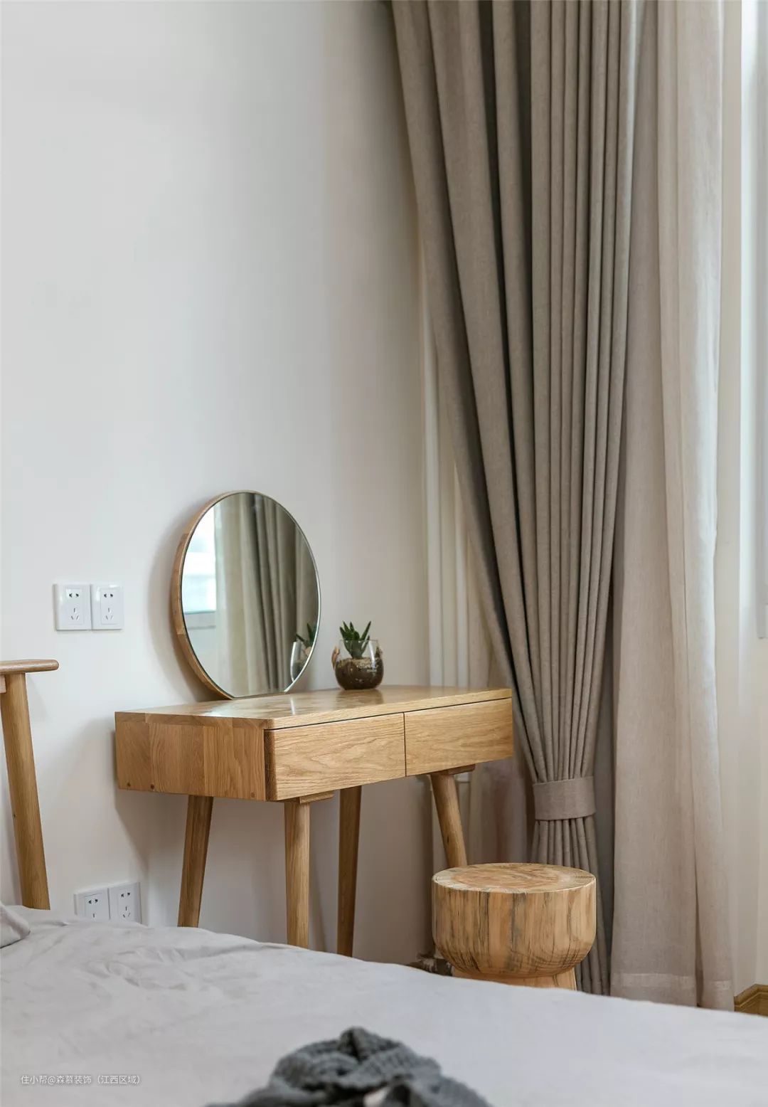 简单的化妆台和衣帽架满足日常的需求,原木风给人感觉很舒服、很干净。