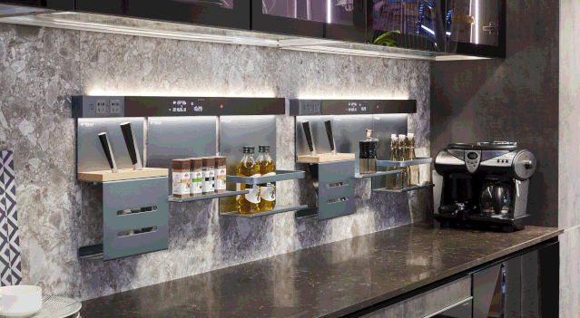 一般厨房的操作台都位于吊柜下方,因此为了避免上方柜体遮挡住顶部光源带来的阴影区,大家在设计灯光的时候可以在吊柜底部加装底灯,给下方的操作台工作区提供光源,这样再也不怕备菜切到手啦!