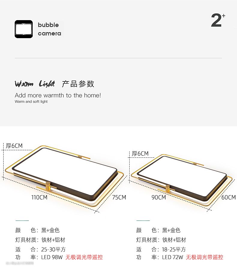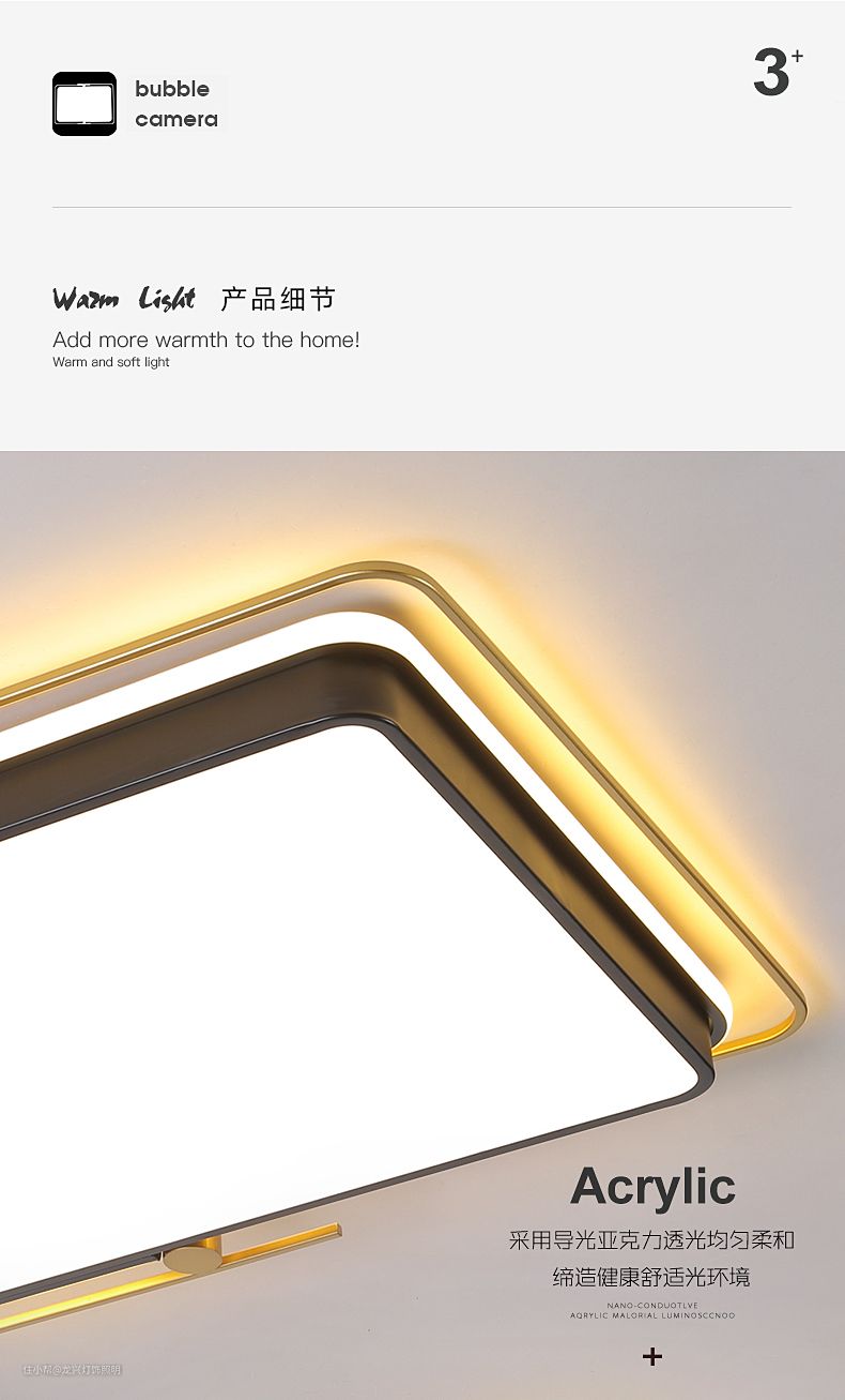 适用空间:长方形吸顶灯一般安装于客厅、酒店、餐厅等,适合比较宽阔的空间环境。