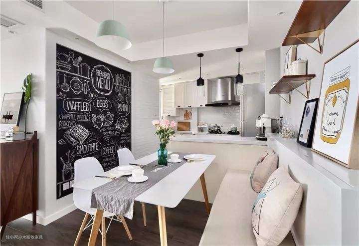 另外还有折叠餐桌,可以考虑选择,平时我们在就餐的时候,把餐桌打开,然后就完餐之后把餐桌收起来,这样不占用空间,对于小户型来说还是比较实用的。
