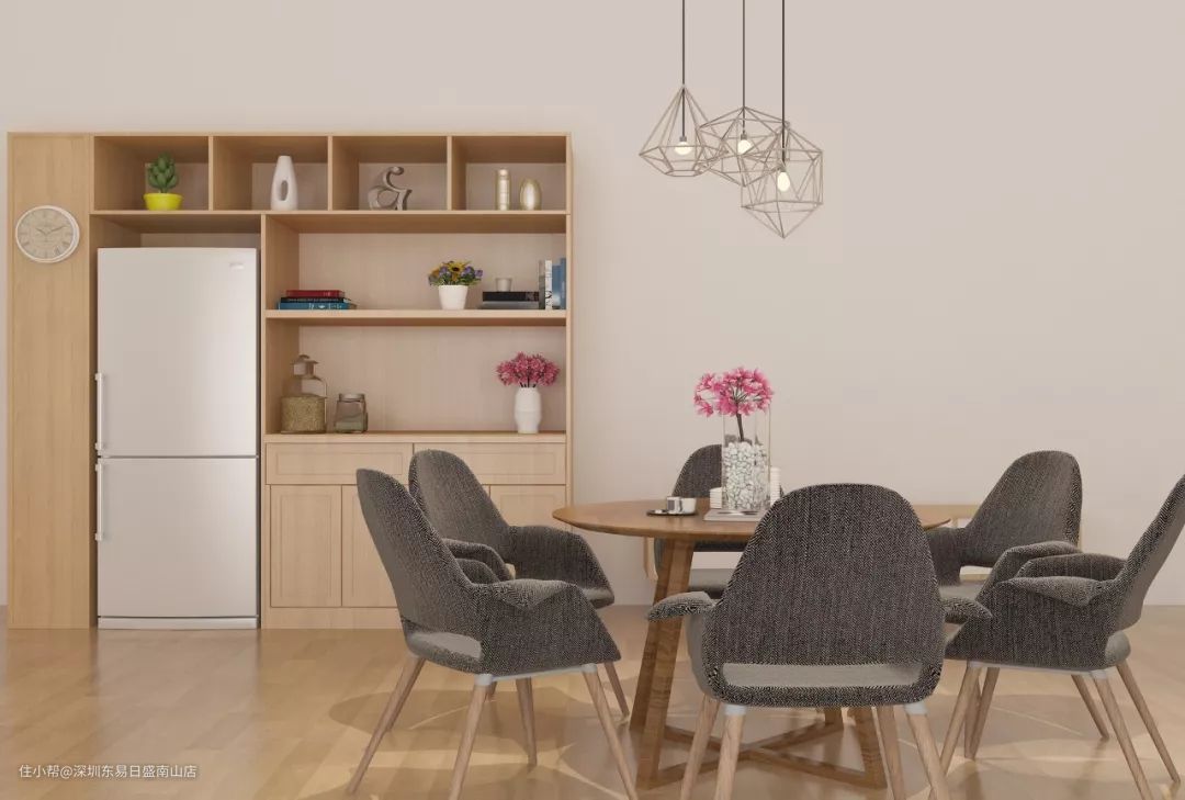 冰箱放在餐厅也不失为是一个好选择,前提是餐厅有位置,摆进去不会显得很挤。如果搞的空间很压抑的话,那么会影响食欲。