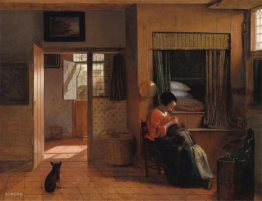 像荷兰画家Pieter de Hooch在1658年创建的油画《母亲的职责》就有这种柜子窗的出现