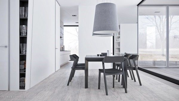 餐厅,空间宽敞,黑色的碳素材料餐桌椅的设计格外的炫酷,棱角分明,而且餐桌上方的灯罩也是独树一帜的设计,整个餐厅格外的清新舒适,实用美观。