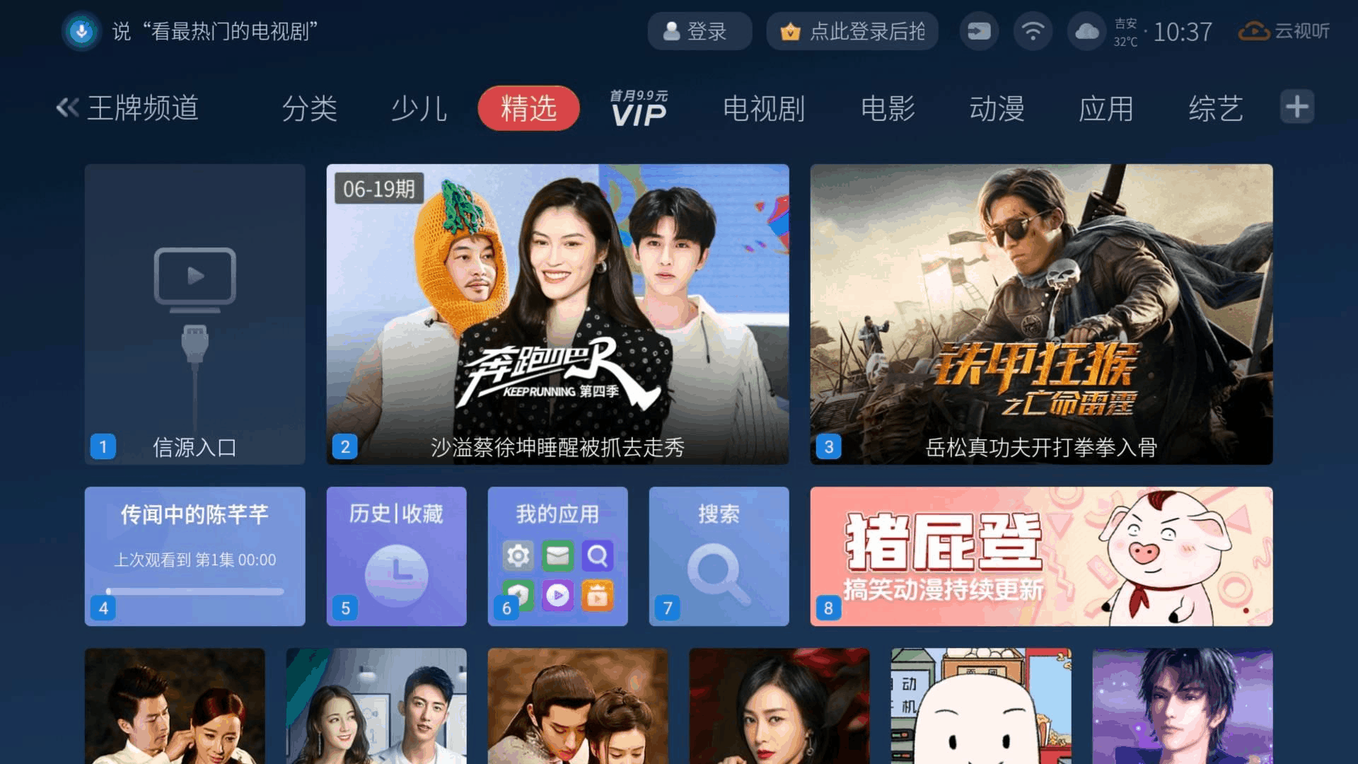 重要的事再说一次,开机没有广告!开机到系统也就是几秒钟的事。TCL 75V8的主页内容相当丰富,光主标签就有18项,包括了王牌频道、少儿、精选、VIP、电视剧、电影、动漫、综艺、游戏、音乐、体育、生活等内容,查找起来相当方便。而主页还有很多一键到达功能,比如信号源入口、当前看的视频、历史收藏、我的应用、搜索等等,选择进入也是很方便的事。