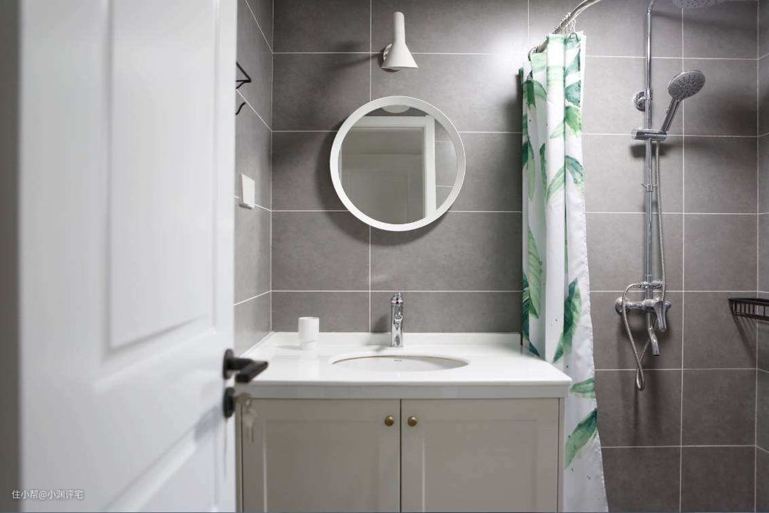 洗手台旁两个,距离地面1500mm,用于吹风机、美容仪等产品的供电。安装两个插座,一方面是为了让多种电器同时使用。另一方面,后期也可以在其中一个插座上装个小夜灯,晚上去卫生间会更方便。