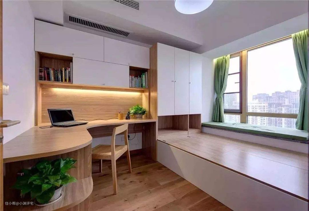 书桌上方两个,距离地面950mm,用于台灯等设备的供电。如果书桌不靠墙,就把这两个插座放到椅子后面。