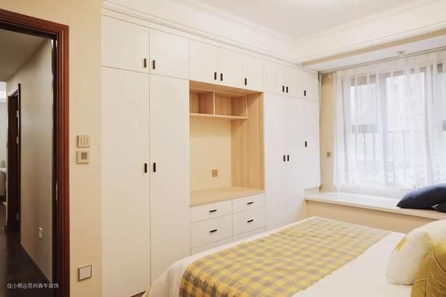而推拉门装了轨道,开门的时候衣柜门不需要往外翻,对于卧室空间比较小的卧室,推拉门是个不错的选择,省空间很多哦。
