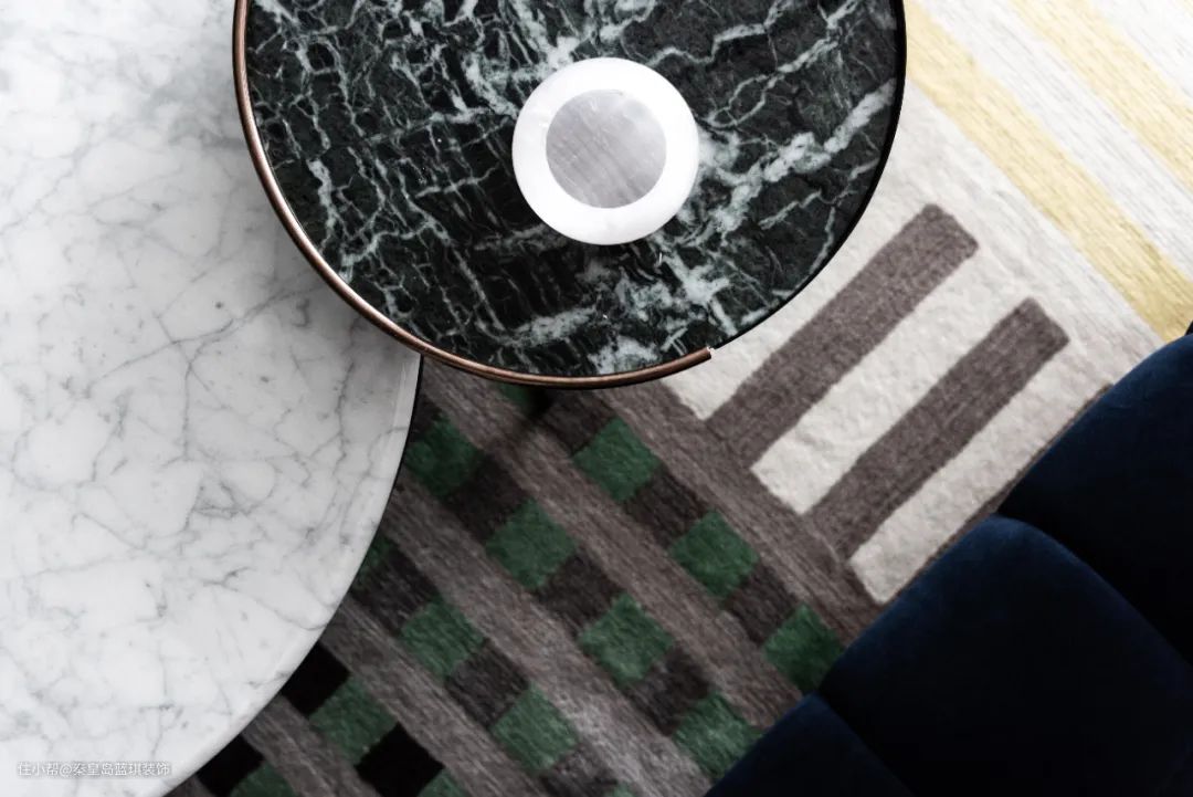 圆形的大理石茶几,黑与白的搭配,时尚感十足。