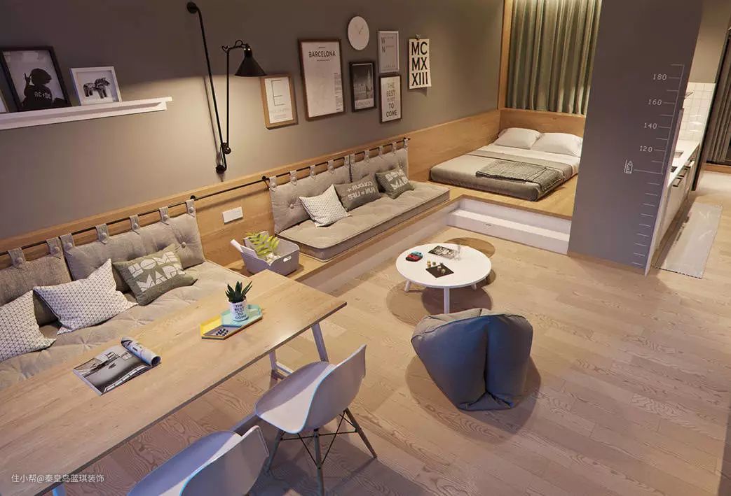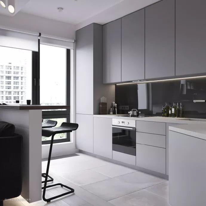 小户型可以把餐厅设计成吧台款的,厨房也做开放式的设计,以吧台餐厅为隔断,来划分厨房、客厅空间,小吧台也能增添情调感。