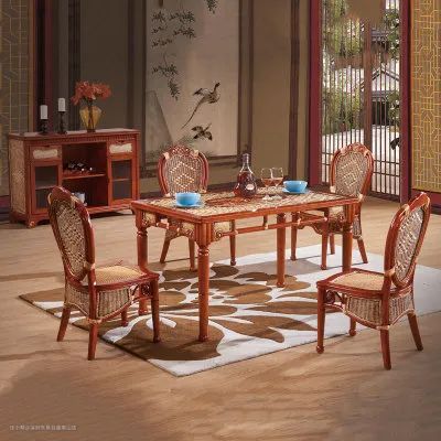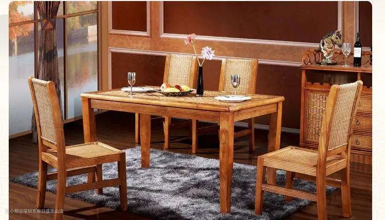 藤艺材质的餐桌有弹性,不怕挤压;健康环保、自然清新,透气性、舒适实用、不易发霉、容易清洗、环保等特点。
