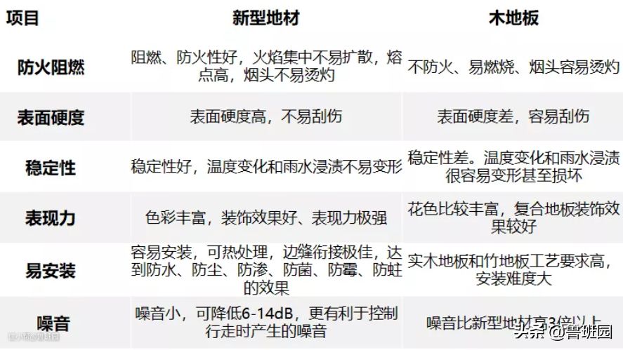 新型地材与其它地材对比