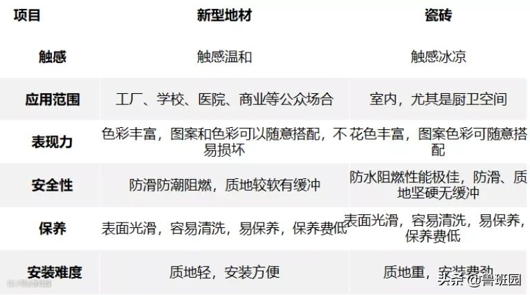 接下来通过新型地材与常见地材的对比,以更好体现这种新型地材的特点。