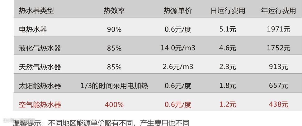 高效节能:通过压缩机系统运转工作,然后吸收空气中的热量来制热的。等量的水加热,电热水器要4度电,空气能热水器只需1度电;