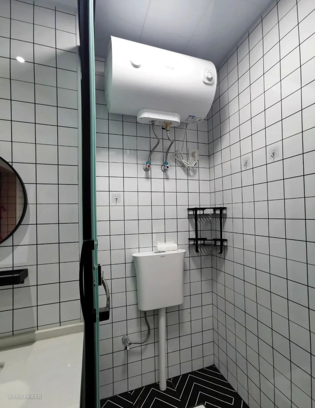 4、热水器的安装需要在在卫生间瓷砖风干之后才能安装;非隐藏安装需要吊顶之后才能安装;半隐藏或是隐藏式安装需要先安装热水器再吊顶。