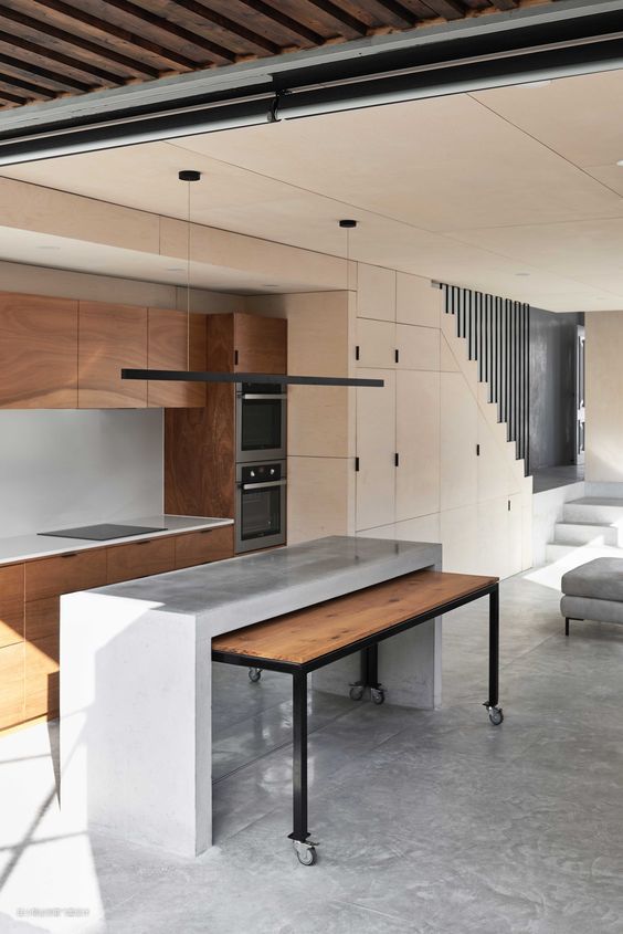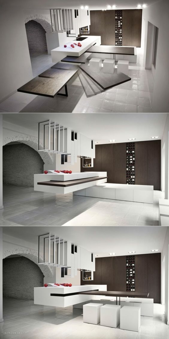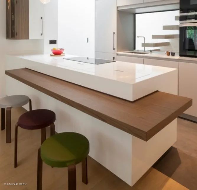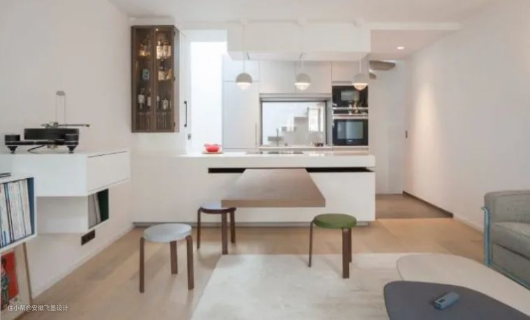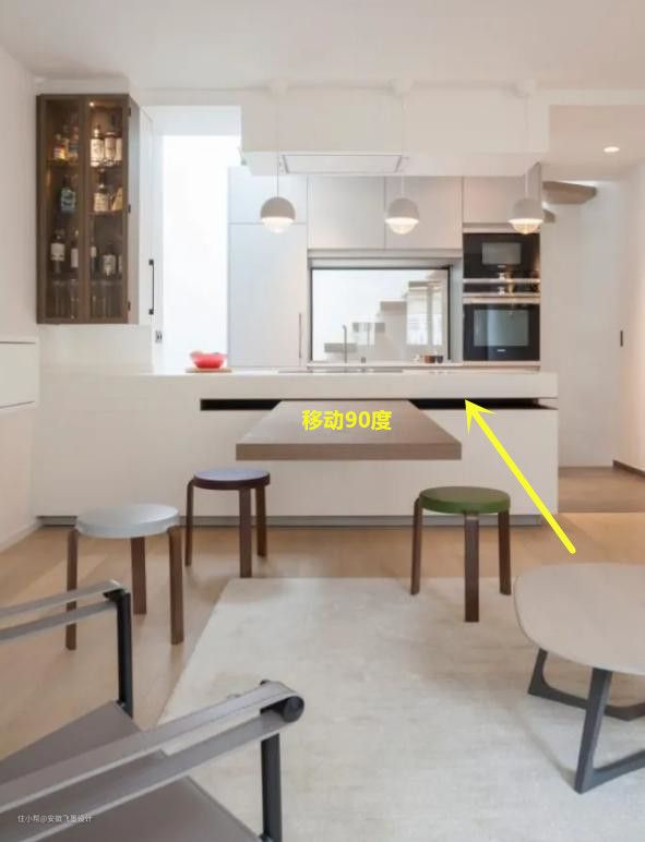 除了移动实现隐藏餐桌的设计之外,给大家盘点以下3种隐藏在岛台的餐桌设计:
