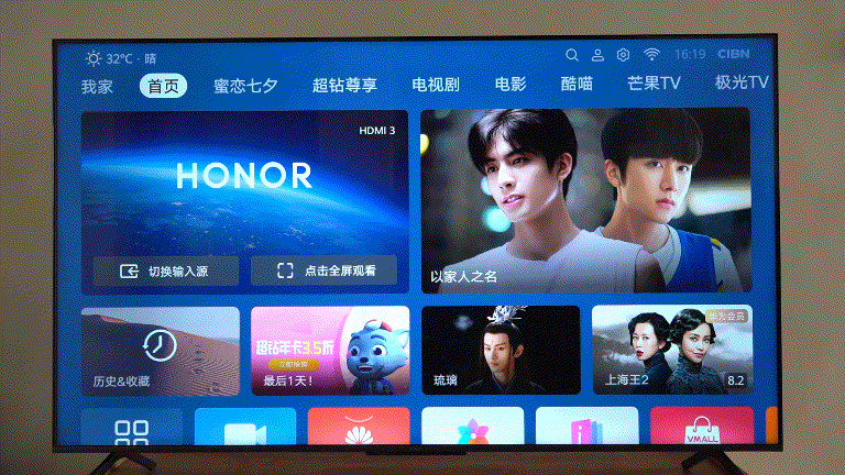 智能时代的产品,荣耀智慧屏X1内置的资源库也是比较丰富的,多平台的视频资源都囊括麾下,整合有腾讯极光TV、优酷、酷喵、芒果TV等主流视频平台资源,热门电影、影视剧集、各类综艺等一应俱全。充值好会员,就可以愉快的享受视频大餐啦。