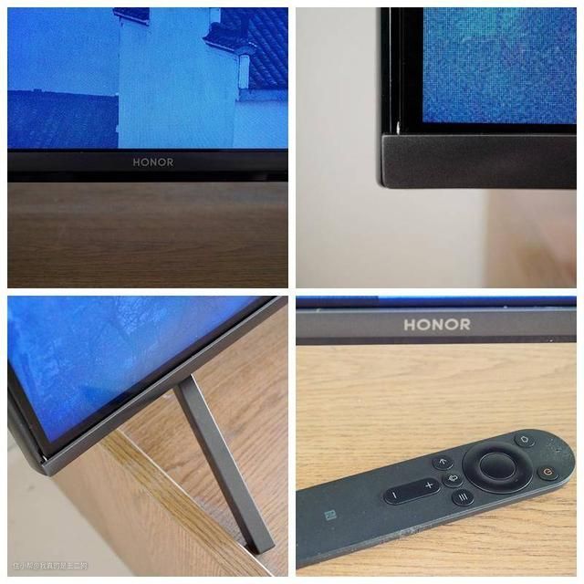 整体的边框比较窄,采用的黑色塑料材质边框。边框采用了流光设计,整体的做工和质感表现不不错。底座采用双支架设计,风格和整体电视设计语言统一,金属材质的底座在耐用性和质感表现上更加出色。正面高占比的屏幕设计, 除了正面底部中央的HONOR Logo再无其他元素,设计风格得到了统一。荣耀智慧屏X1的遥控器采用了长条形设计,遥控器按键并不多,不过操作逻辑较为简单,上手较为轻松。同时不大的体积和亲肤的外壳材质,整体的握持和触控都比较舒适。