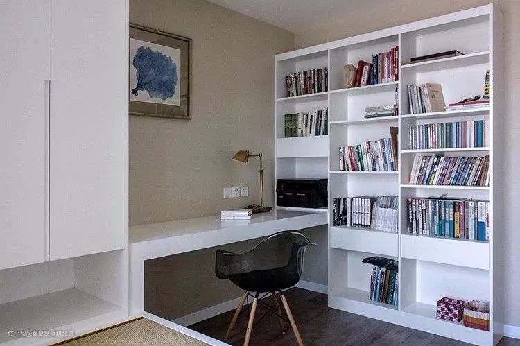 大面积的书柜收纳,摆上主人的藏书显得丰富而又艺术。