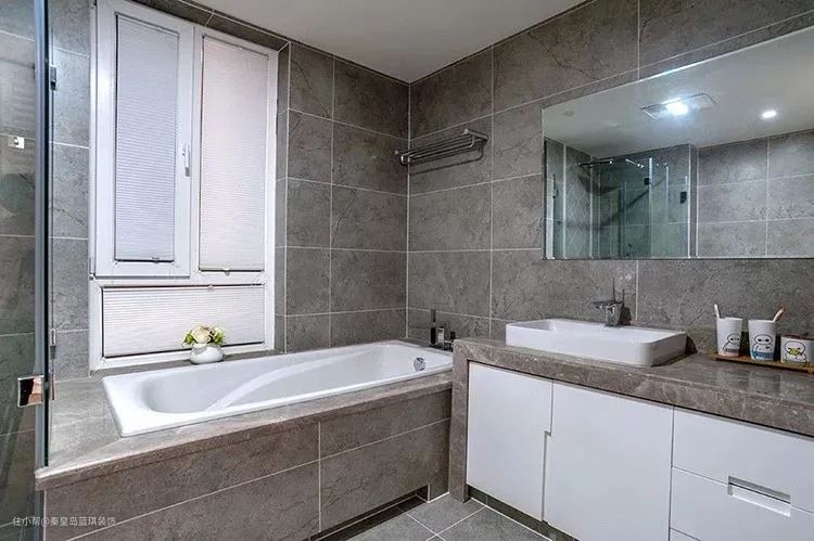 卫生间装了个浴缸,整体大理石与瓷砖封装的空间,简约时尚而又实用高档。