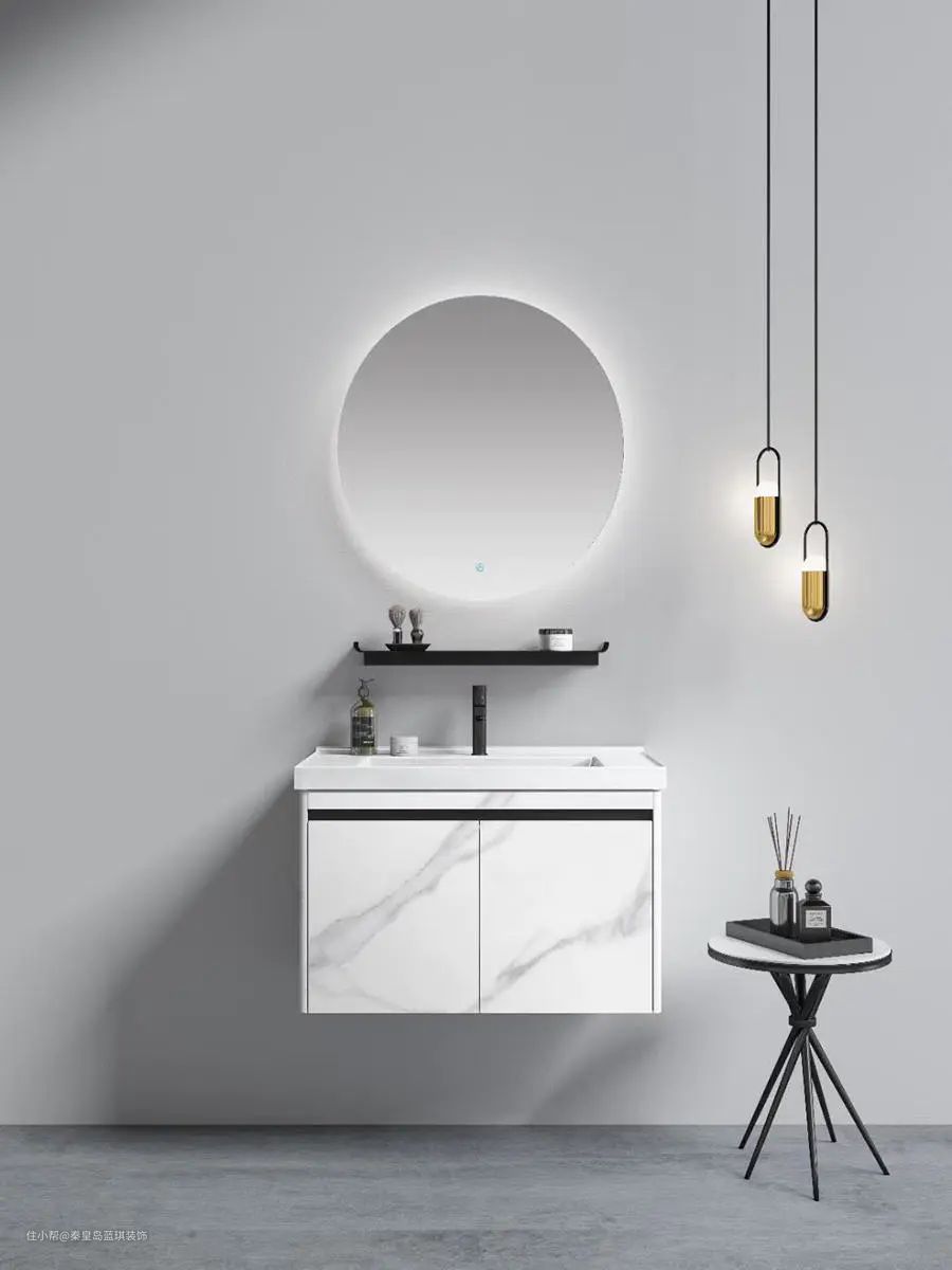 浴室家具主要有落地式和挂墙式两种。款式需要根据每家的不同情况来选择!挂墙式就是底部悬空,靠着墙面链接部件支撑;落地式就是底部触地,靠地面支撑。落地式适用于干湿分离的、空间也较大的,对收纳需求比较强的家庭。而挂墙式设计最大的优势是避免湿气入侵柜体,又节省空间、易于打理,清除了卫生死角。