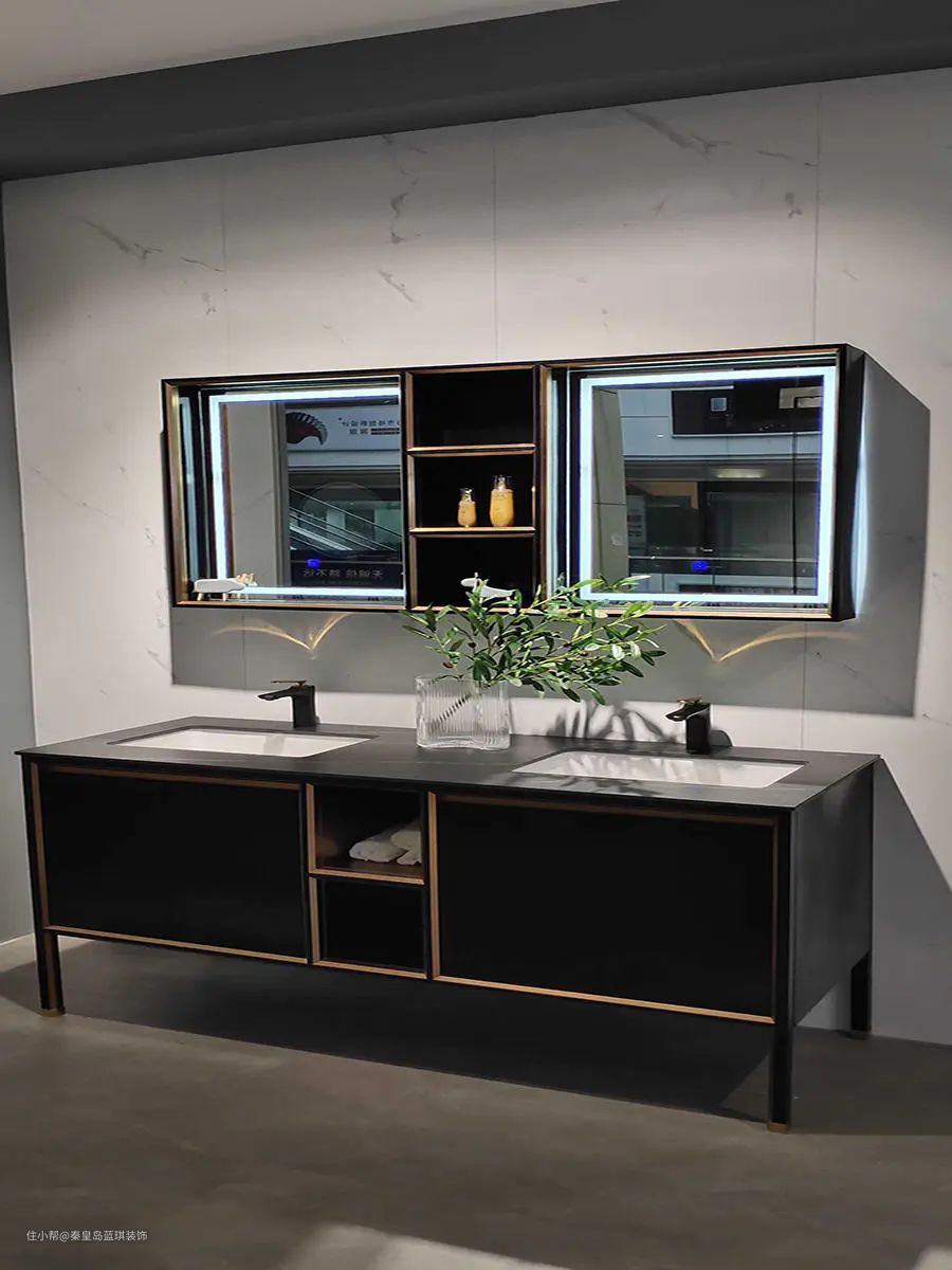 生活经验丰富的屋主都知道,再贵也不能穷了浴室柜,浴室柜在卫浴间里有着至关重要的地位,它不仅承担着卫浴空间大部分的清洁及洗漱物品的收纳,而且影响着整个卫浴间的风格。一个绚丽色彩混合搭配的浴室柜,别墅整体家居定制,洋房板木家居,别墅家具订做,别墅全屋定制整装,既彰显着主人的品味,又可以让你的浴室变得更有情调。
