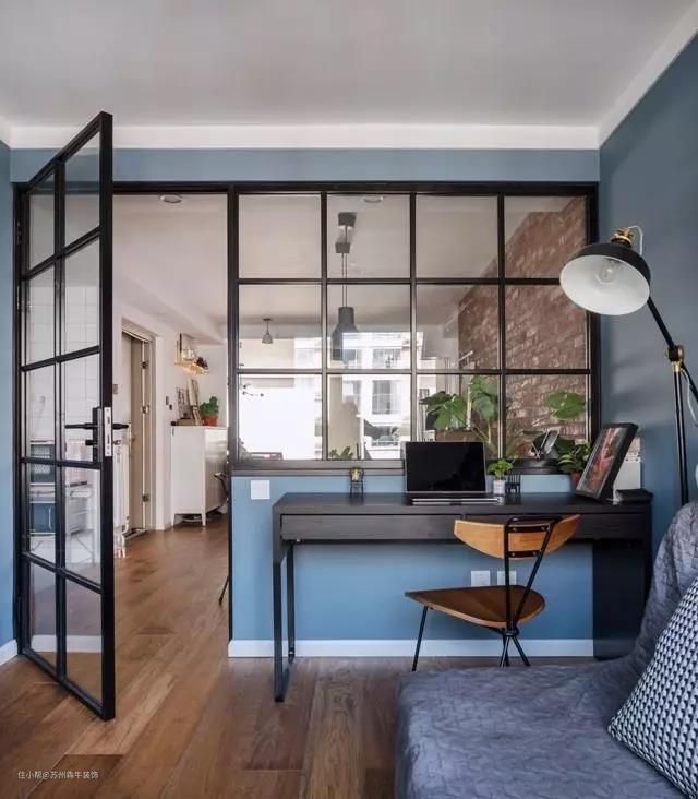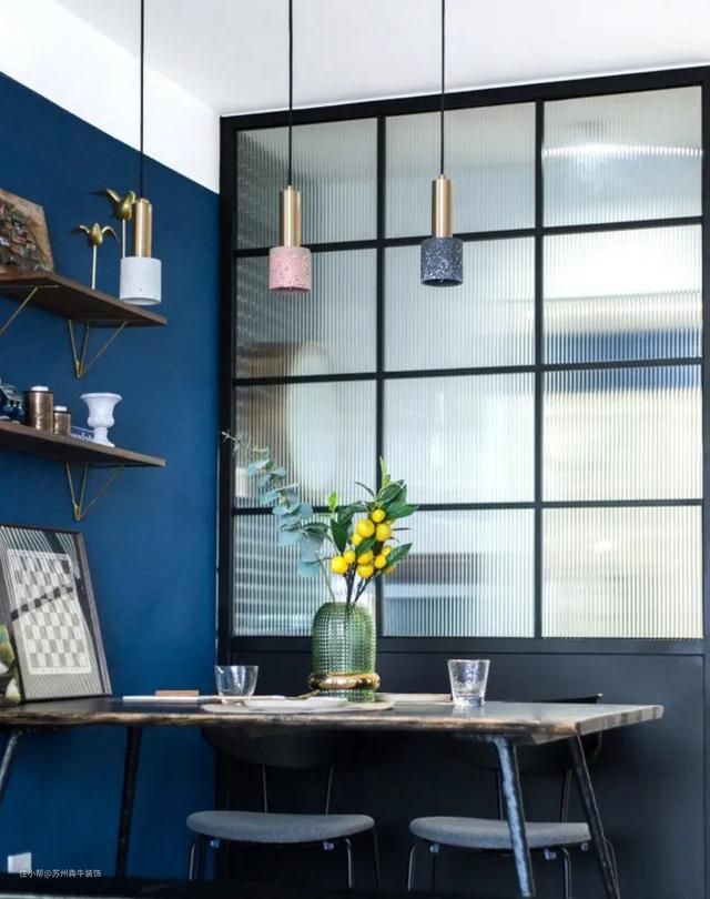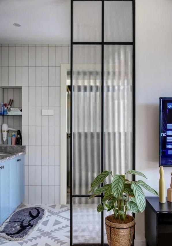 在一些空间想要加隔断,但是又想要通透感觉,不想砌墙或者做柜子,可以试一试做半墙长虹玻璃。
