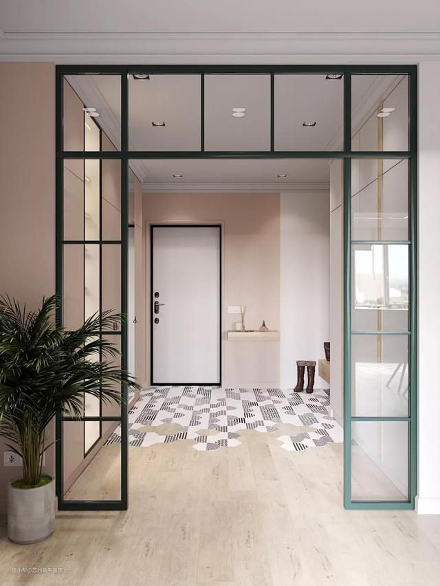 在玄关处不要再做栅栏,试试长虹玻璃隔断,朦胧的美感,提升空间视觉感。