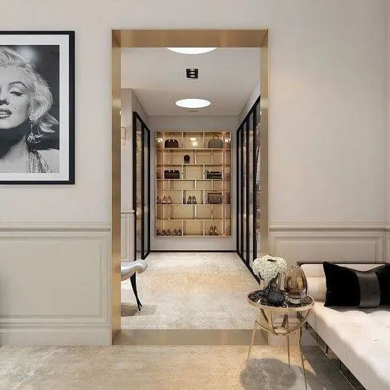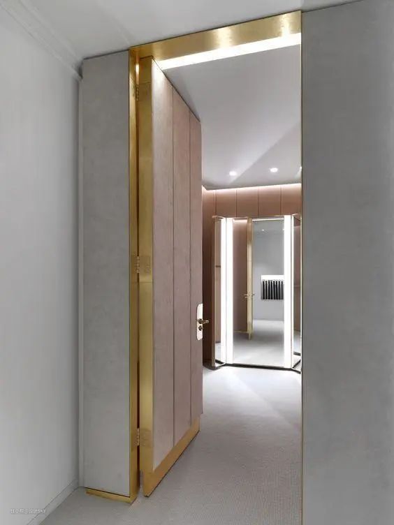 ②大家经常diss垭口和门套的原因,无非就是木门套太粗,雕花太土,如果换一种材质,换成黄铜等金属材质,你家可能比现在要高级100倍!