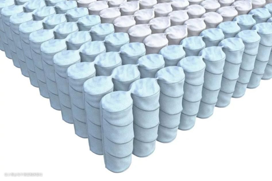 这种独立袋弹簧以每两个弹簧为一组,以正旋和反旋的方式结合,通过相互作用力结合,使每对弹簧组合成一个支撑系统。