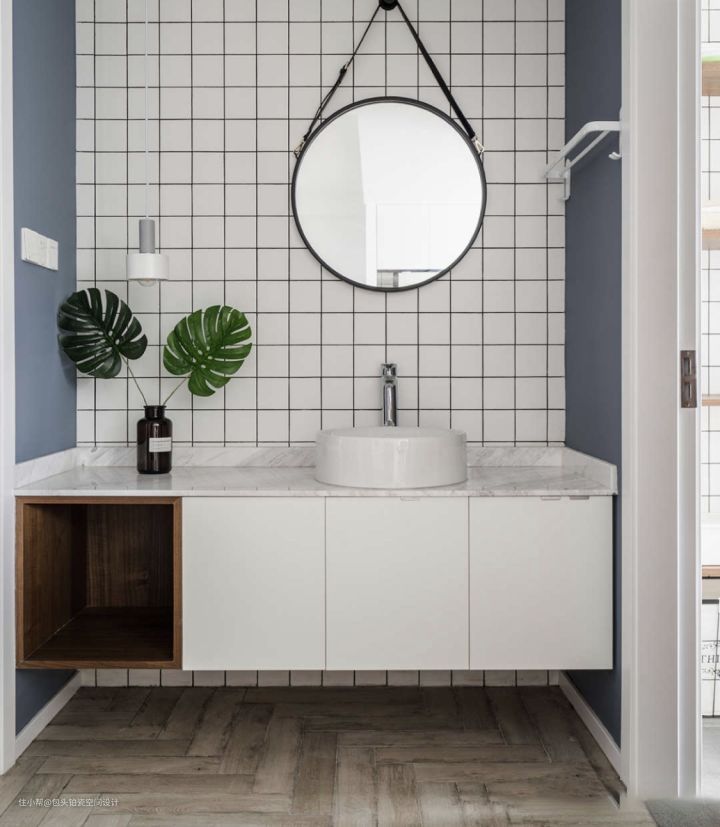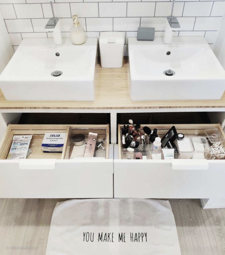 做了墙排:你可以选择一个抽屉式的浴室柜,享受着完整的浴室柜空间,而且还拿取方便。