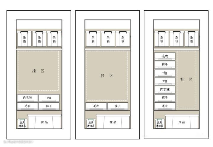 其实好的衣柜布局,根本就不用想那么多,应该是越少隔板越好,剩余的空间用抽屉式收纳箱填充就好了。