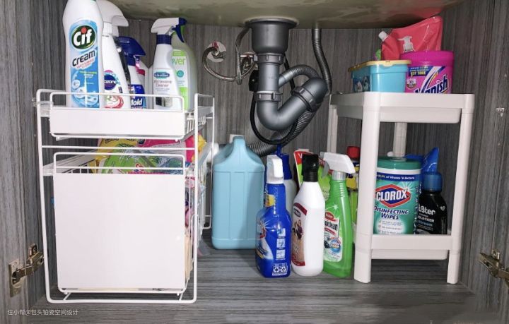 补救措施有很多,比较推荐抽拉置物架,相对其他水槽下置物架,它算是拿取最方便的一种了。