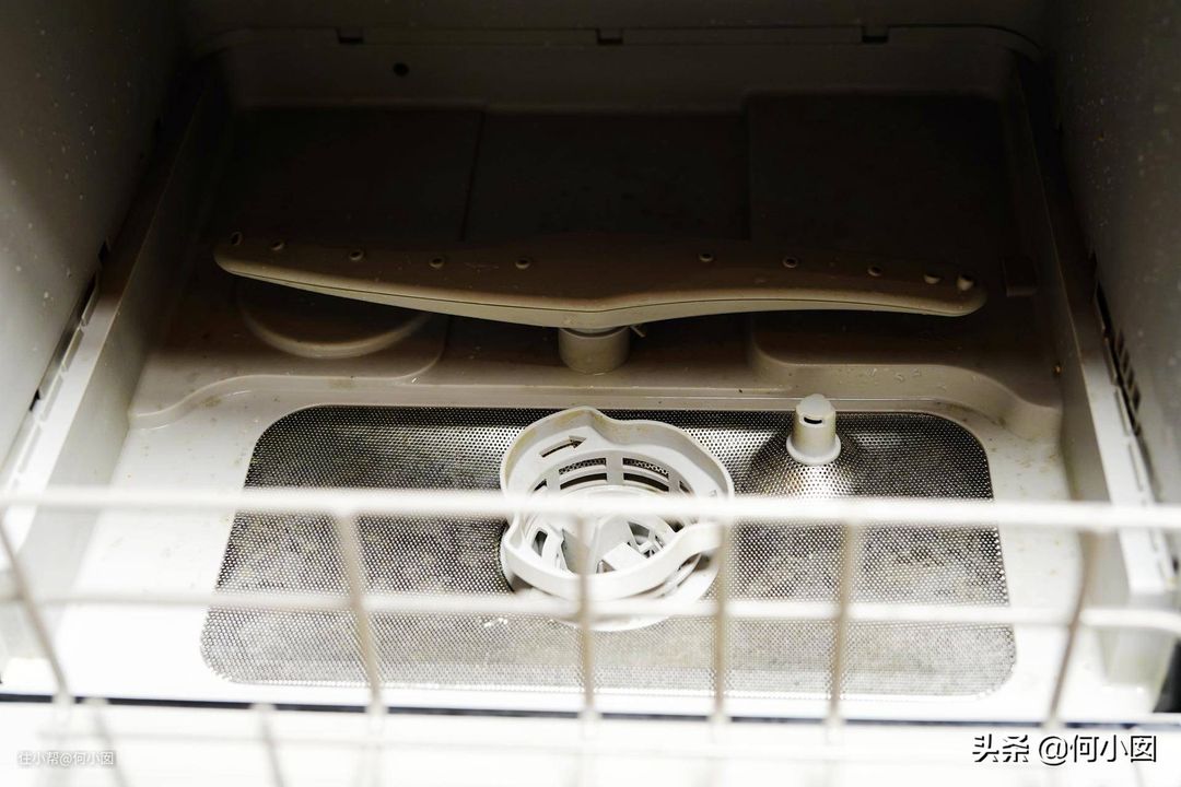 机器内部出了双层拉篮,下喷淋臂以外,与大套机型一样有过滤碗碟渣子的过滤网,并可以拆下清理