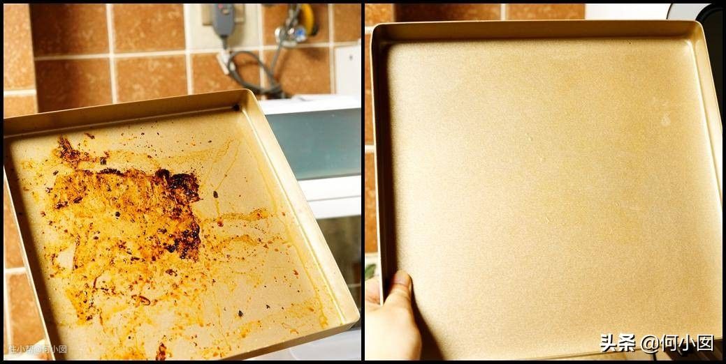 所以,在实际洗涤的过程中,由于内腔空间更小,实际洗涤能力反而更强了,我们实测一下吧,还是图片说话吧,下图是我一个烘焙的烤盘,烤了肉的,大家都懂,肉汁会干在盘底,很难清洗,如果手洗,那绝对是一手油,换洗碗机就不同了,放进去脏兮兮,拿出来干干净