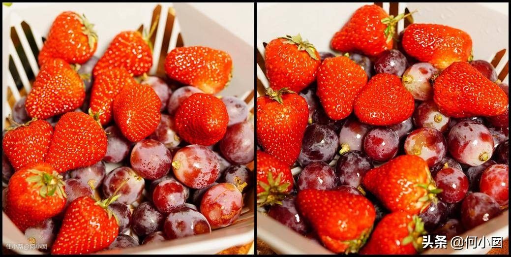 最快的是水果洗,水温36度,只需要12分钟,就够啦,看看对比,左边是洗之前,右边是洗之后,看不出明显的差别,本身草莓和葡萄也不是太脏