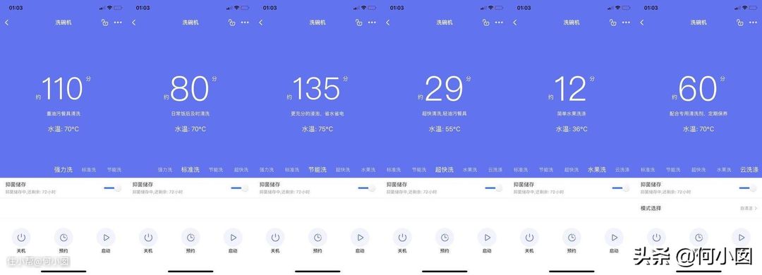 再说说其他几个程序,强力洗很少用,70度水温洗110分钟,一般是油污很大的才会用到,比如吃了火锅的碗筷之类的