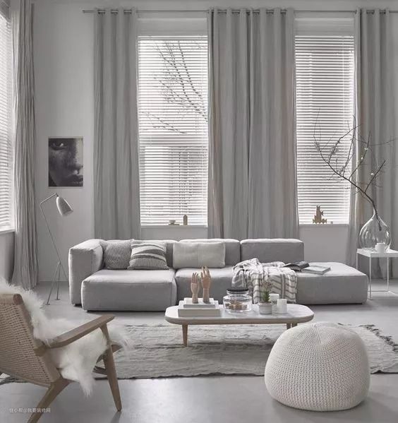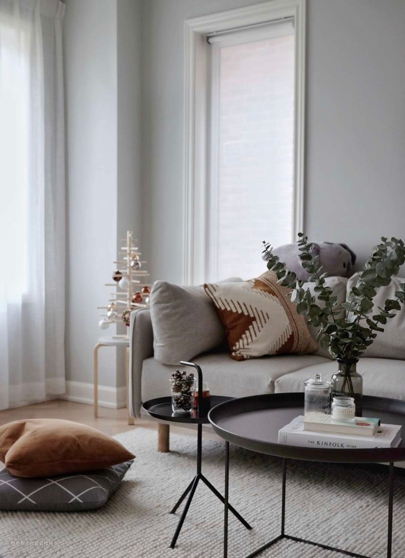 茶几的高度是根据沙发的高度来确定的,茶几以桌面略高于沙发的座垫高度为宜,最高不要超过沙发扶手的高度。下图中的高度就很合适啦~~