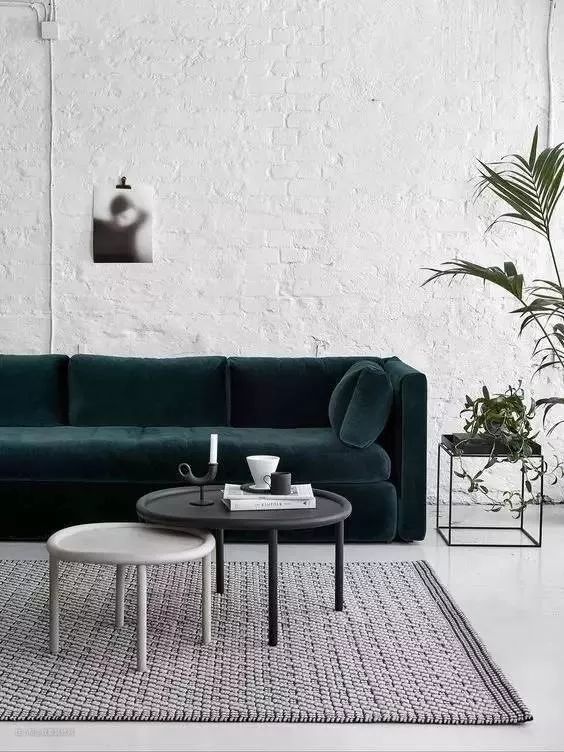 形状上的对比打破统一的搭配法,可以让客厅显得更有亲和力,可以尝试选择一些大小和形状各异的,比如方形、长方形和圆形的组合搭配。或者在一堆饱满的沙发中搭配1~2个线条干净利落的茶几,可以制造轻松的感觉。