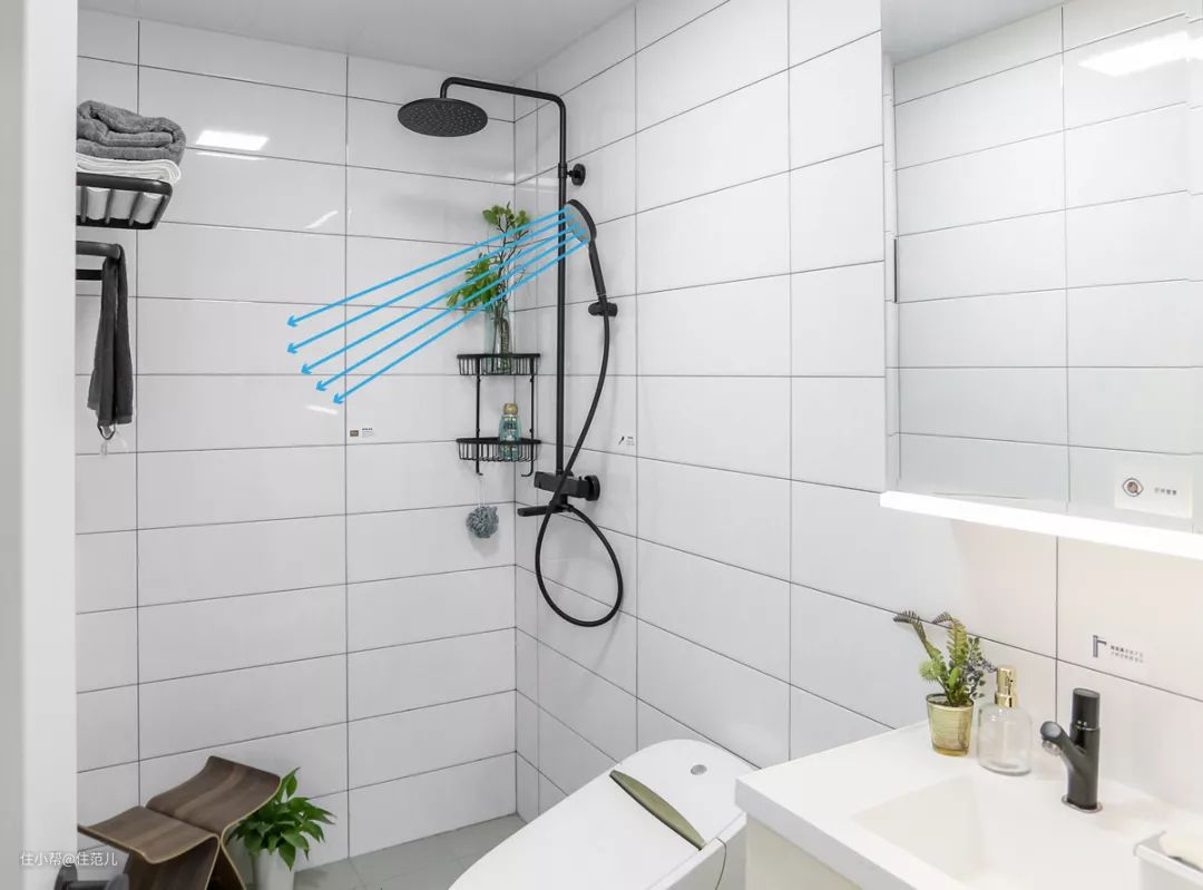 往淋浴区侧边的墙面一放置,需要使用时拉住把手打开,收缩干净利索,不占空间。